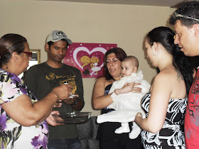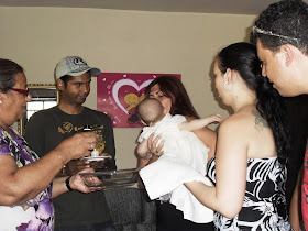 Oiii,, hoje vim contar como foi o Batismo da Isa em Casa. O Batizado ocorreu dia 07/01/2012, pela manhã. Estavam presentes os padrinhos de casa Jamilson e Nany, a vovó Míriam, Isabel, o papai e a mamãe é claro.